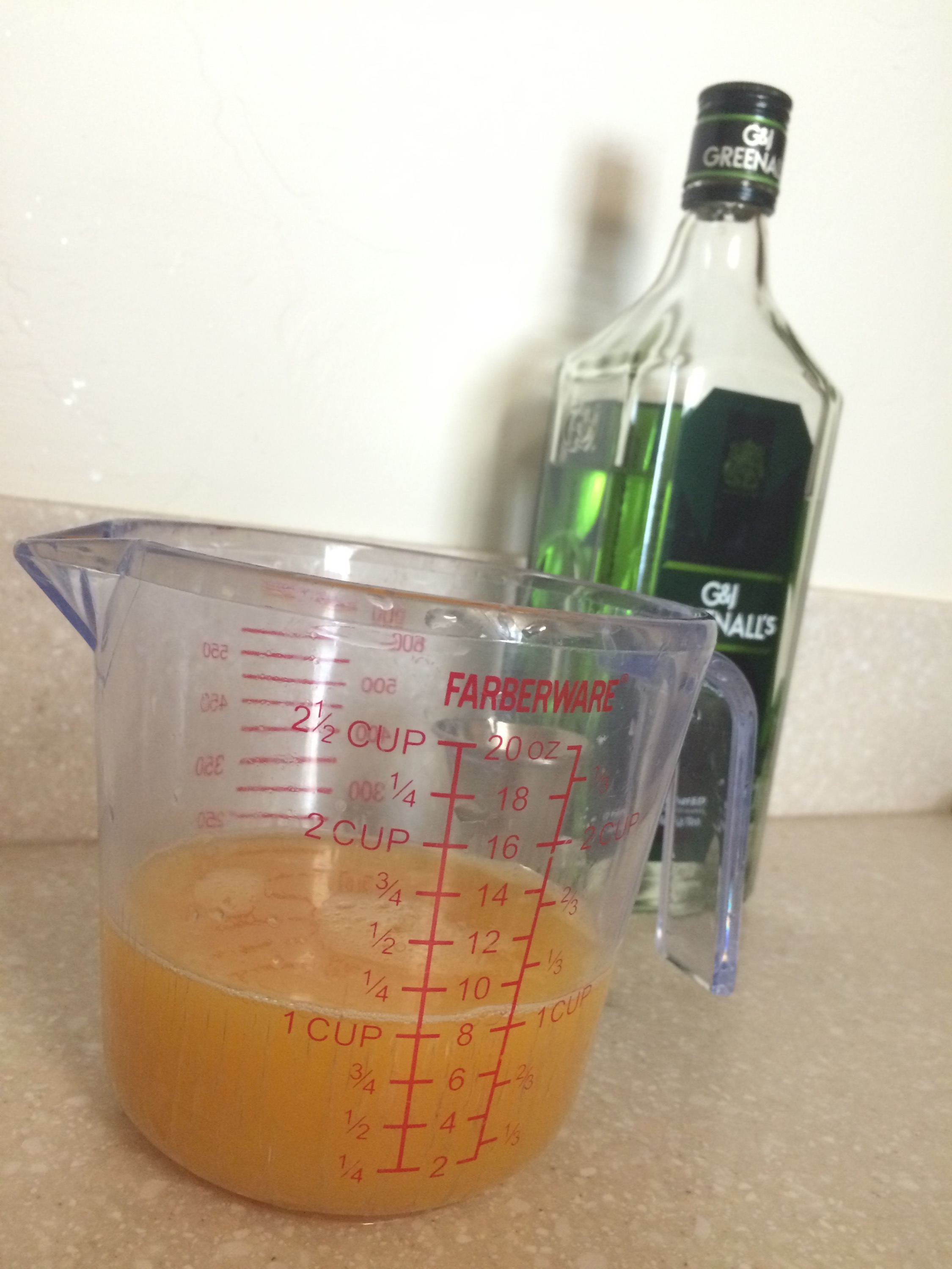 Sometimes life gives you lemons, and sometimes your CSA box gives you oranges. Oranges are not lemons. They are delicious even without beer (unlike lemons). However, Craig and I are lazy when it comes to eating oranges. By the time we finally get around to peeling them, they are usually pretty dry and chewy. So this week, I juiced our oranges while they were still in their prime. Happy Easter to us! Gin and Juice deliciousness.