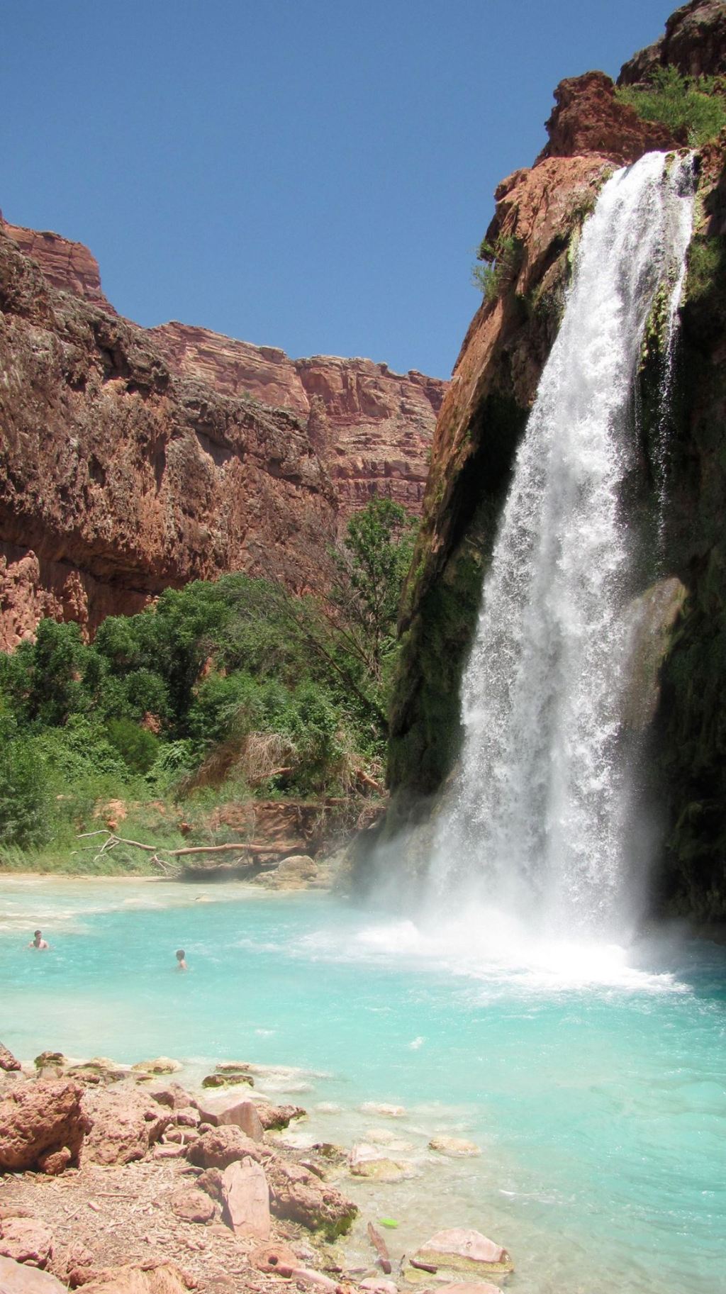 This video below shows a couple of professional jumpers (who I’m guessing are on YouTube since they were videotaping their jumps) at Havasu Falls. They also had a dog that traveled with them and was trained to swim towards them as soon as they jumped in case they needed to be rescued. How cool is that?! You can see the dog swimming towards them from the left.